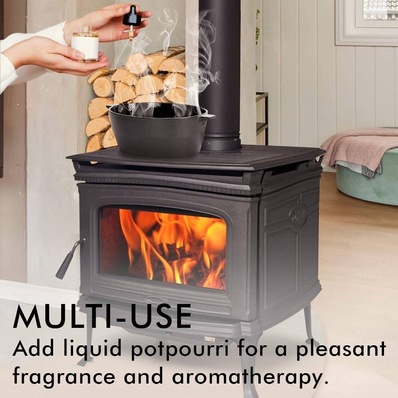 Cast Iron Wood Stove Steamer & Humidifier - 2.5 Quart Rust-Resistant Indoor Heater-Free Heater-like Warmth, Matte Black Finish with Lattice Top, Patented Non- Design for Home, Office, or Spa-like Moisture - Multi-Use Stove