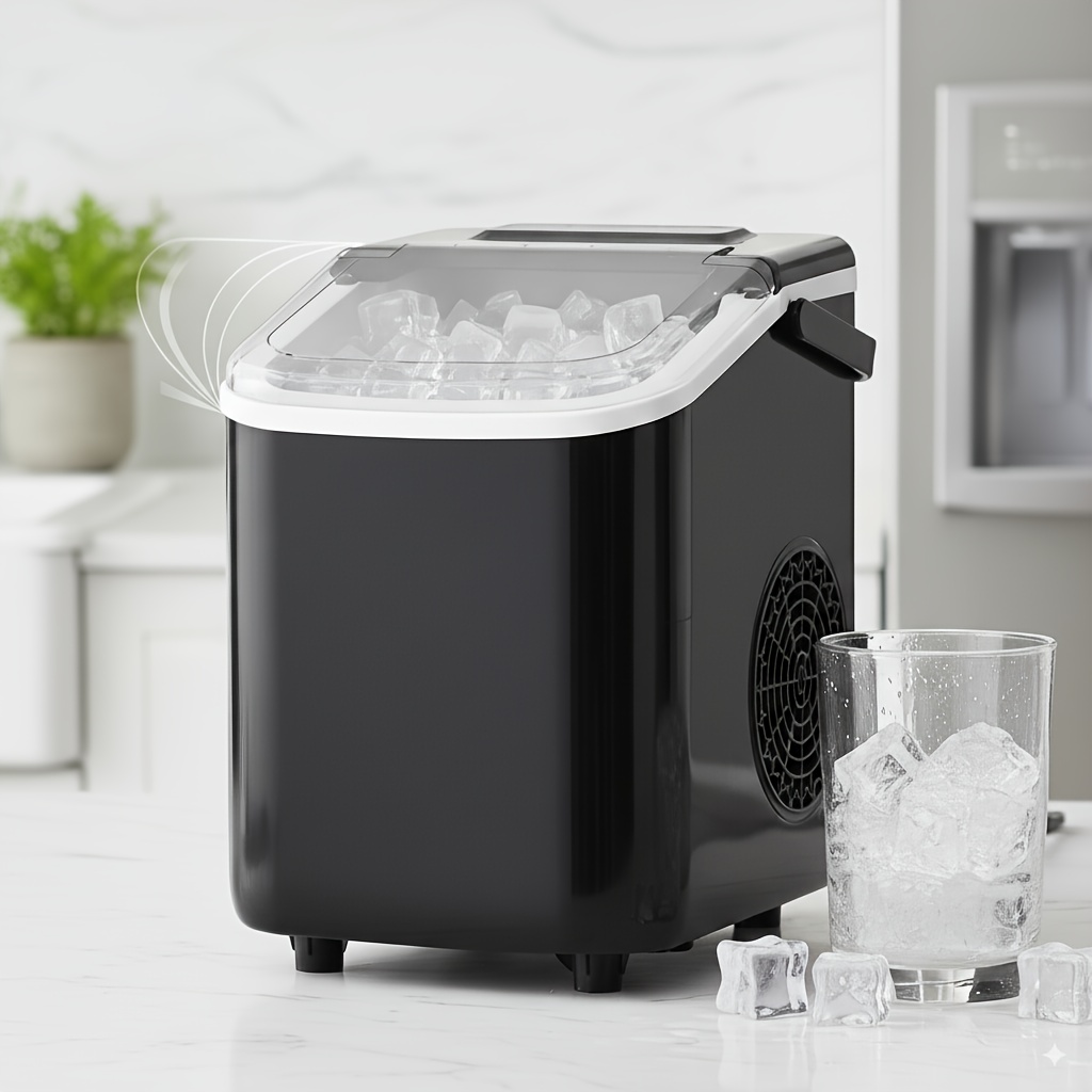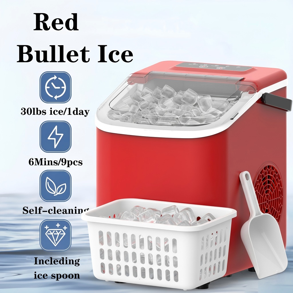 Ice Maker Machine For Countertop 30 Pound Bullet Ice Machine, Portable Bullet Ice Machine Can Produce 9pcs Of Bullet Ice In 6 Minutes, With Automatic Cleaning Function For Baskets And Spoons, And Can Be Operated With One Click For Campings