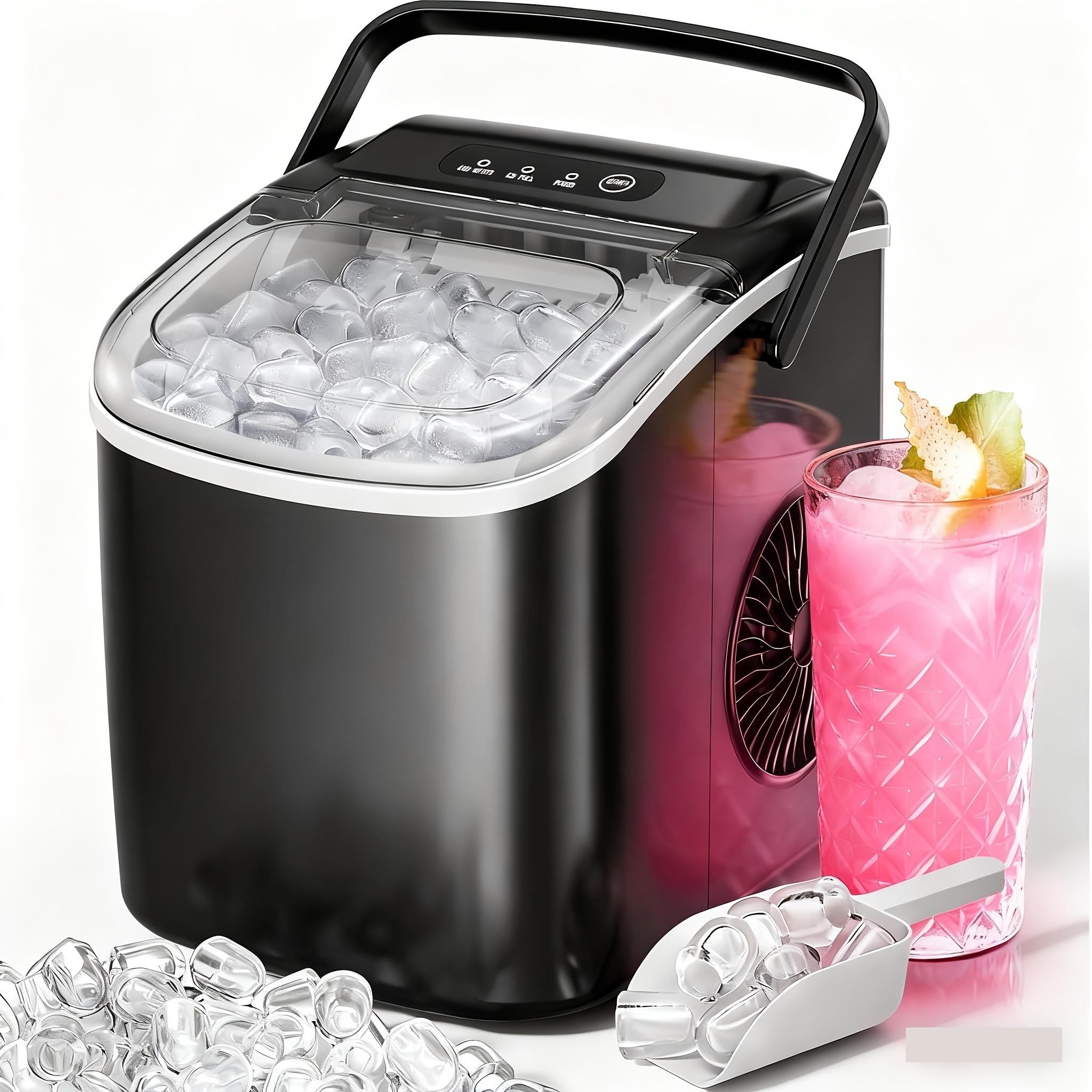 Bullet Ice Makers Countertop with Ice Scoop & Basket, Ready In 6 Mins, Self-Cleaning Ice, Portable Machine for Home, Office, Kitchen