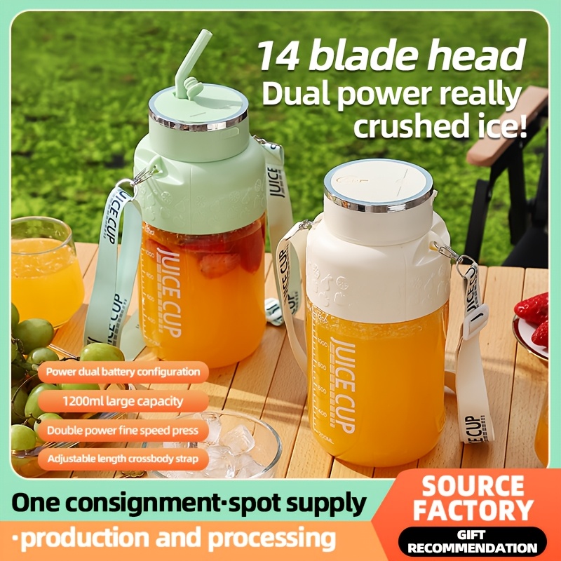 1200 milliliters capacity, universal for all seasons, large-capacity wireless portable juicer bucket, electric sports cup-style fresh fruit juicer, 10sets of stainless steel blades, powerful motor, highly suitable for outdoor fresh juice extraction.