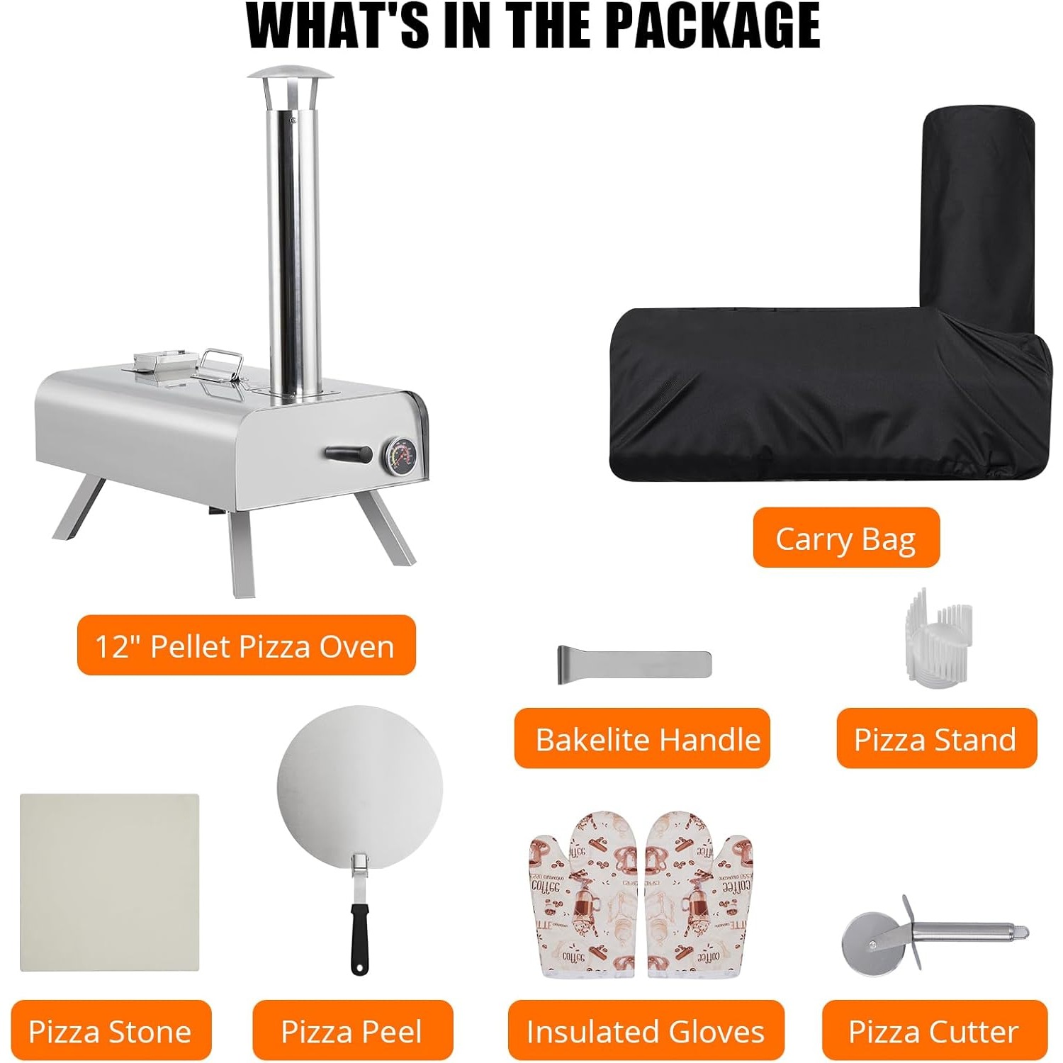 Outdoor Pizza Oven, 12 in Portable Pizza Oven Outdoor, Wood Pellet Pizza Ovens with Pizza Stone, Pizza Peel, Thermometer and Carry Bag, Stainless Steel Pizza Maker Grill for Outside Backyard Camping