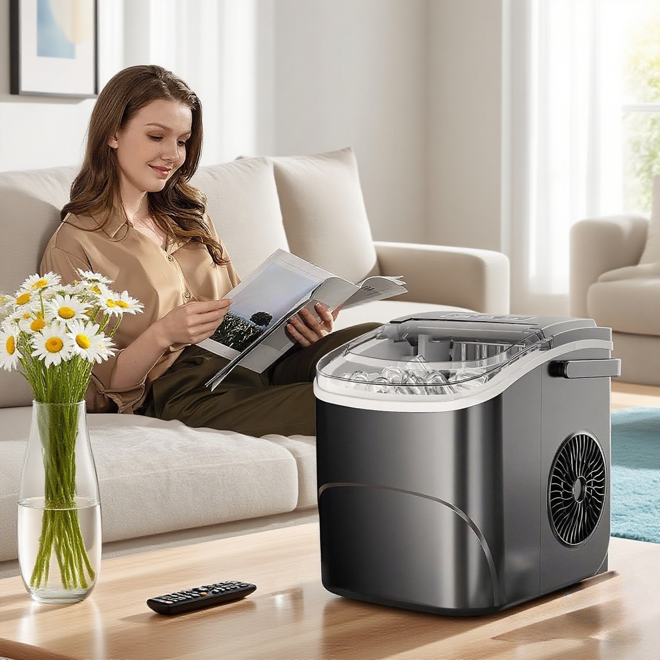 Portable Countertop Nugget Ice Maker with One-Touch Self-Cleaning, 35lbs/24H & 7-Minute Ice Production, Soft Chewable Nuggets, Includes Scoop & Basket, Stainless Steel Design for Home, Kitchen, Office, Parties (Black), Chewable Ice Maker, Kitchen Appliance, Modern Kitchenware, Easyclean Machine