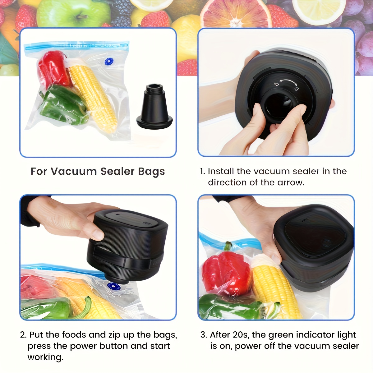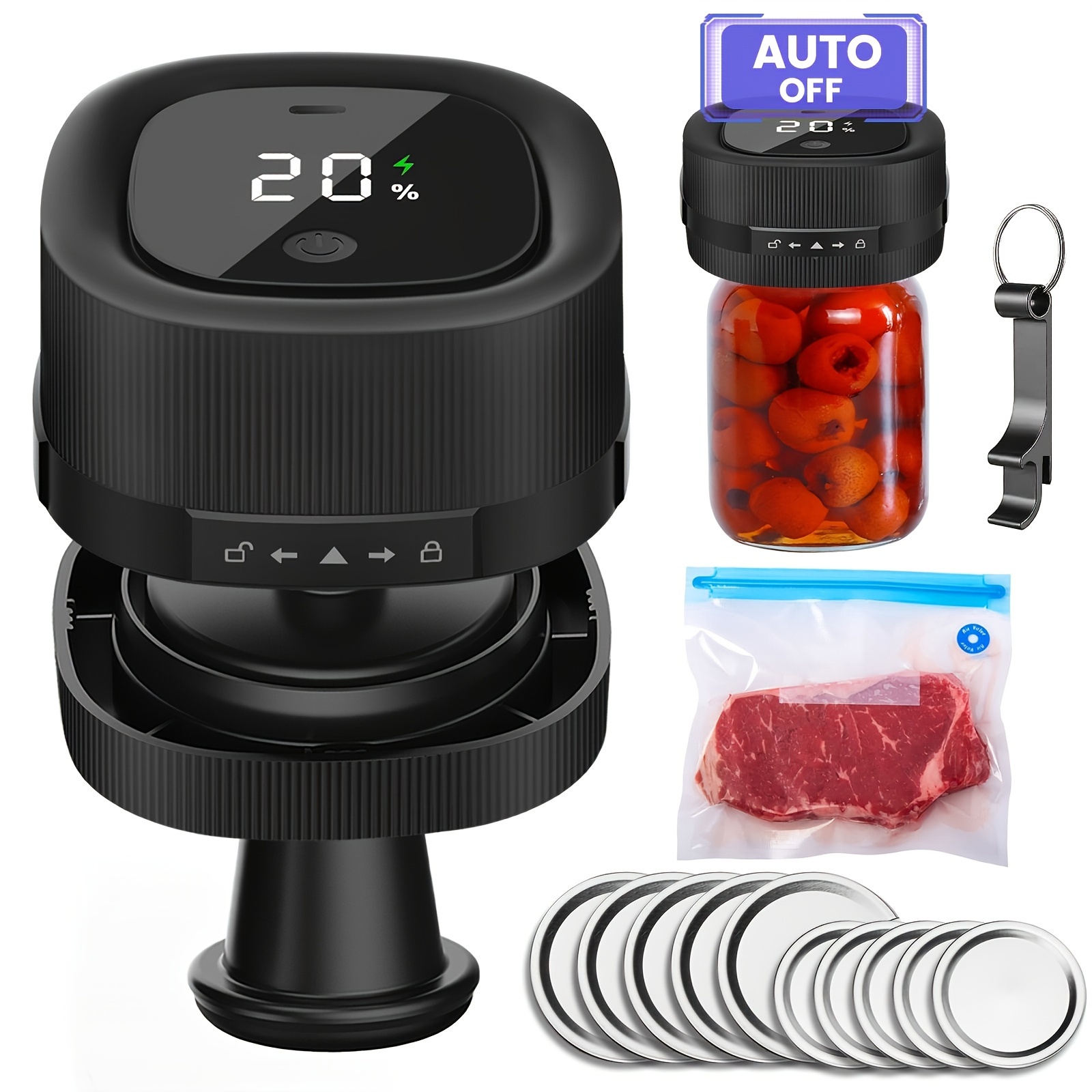 Mason Jar Vacuum Sealer with Vacuum Bags, Suitable for Wide and Regular Mouth Mason Jars, for Storing Dry Goods, Includes 5 Wide and 5 Regular Mouth Mason Lids
